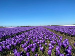 29 maart 2021De temperaturen zijn nog vrij laag, maar wanneer de thermometer dubbele cijfers gaat tonen, dan explodeert de Kop van Noord-Holland. Het grootst aaneengesloten bloembollengebied van de wereld staat op springen. Het is wachten op explosie van kleur, een lappendeken van verschillende kleuren. Op dit moment is het nog guur en koud, is het nog werken met mutsen op, winterlaarzen aan, en ontbreken ook de handschoenen nog niet. Toch geven de krokussen al aan dat Pasen in aantocht is. Mooie heldere kleuren piepen door het winterse strolaagje heen.