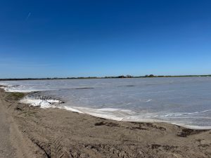 Om schade aan het jonge plantmateriaal te voorkomen, hebben we verschillende maatregelen getroffen. Zo hebben we de percelen met het jongst geplante materiaal afgedekt met doek om ze te beschermen tegen de kou. Daarnaast hebben we op andere percelen nachtvorstberegening toegepast. Dit betekent dat we de vaste beregening in de velden hebben aangezet zodra de temperatuur onder de 2 graden Celsius zakte. Zo was het om 03:30 uur nog 4 graden boven nul, maar om 04:30 uur daalde de temperatuur richting het vriespunt, en konden we de beregening op tijd starten.