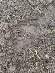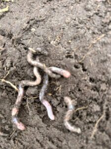 Een belangrijk aspect is lucht in de bodem, lucht wordt onder andere gevormd door de wormen (en wormachtige) in de grond. Deze worm is gebaad bij zo min mogelijk tractor verkeer, goed organisch stof gehalte (voedsel), minder grondbewerking (ploegen) en chemische bestrijdingsmiddelen waar kan vervangen door biologische middelen. Prachtig om te zien, dat wanneer we gaan planten, de wormen volop aanwezig zijn in onze gronden. Samen werken met de kracht van de natuur, op weg naar een mooi gewas.