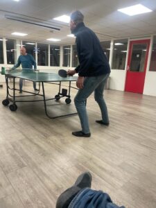 maar lekker een potje tafeltennissen. En nog leuker, een kleine competitie met collega's!