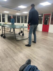 maar lekker een potje tafeltennissen. En nog leuker, een kleine competitie met collega's!