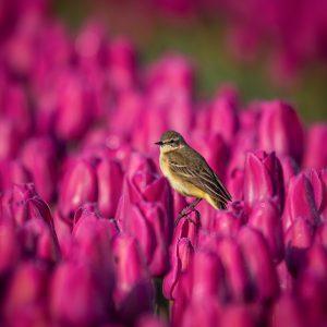 11 mei 2020Wat kwamen we ze vaak tegen in het land, dat prachtige kleine vogeltje met z'n mooie gekleurde borst. Maar, ... op de foto zetten, dat valt niet mee. En toen was daar Judith Veenstra in het land die het geduld, de passie en de apparatuur had, en dit vogeltje graag in de tulpenpracht wilde vastleggen. Het schichtige vogeltje liet zich niet makkelijk vastleggen op de gevoelige plaat, maar het is de moeite waard geweest, wat een pracht.