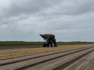 Naast bloembollen telen, wordt op onze percelen ook groentegewassen geteeld. Voorbeelden hiervan zijn witte en rode spitskool, witte en rode kool, diverse soorten sla (little gem), en deze week zijn er wortelen gezaaid. Door een ruime vruchtwisseling van telen, zorgen we ervoor dat de bodem gezond en veerkrachtig blijft. Daarnaast zijn deze wortelen een bijdrage aan de binnenlandse voedselveiligheid, en kunnen we daar straks allemaal van eten. Met de gevallen milimeters aan neerslag kunnen de zaden nu goed wortelen. Precies zoals we het graag zien!