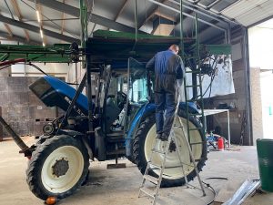 3 juni 2020Wat nu dan? Een andere kleur op de dam? Jawel er is sprake van een trendbreuk. Na honderd jaar alleen maar rood van Massey Ferguson, dan nu toch een blauwe op de dam. Deze New Holland trekker zal opgebouwd worden tot stro dek machine, zodat ook deze werkgang in eigen beheer gedaan kan worden.