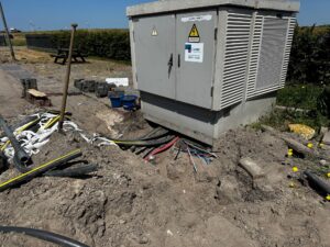 Sinds een jaar of 5 liggen er op de daken van de bedrijfsgebouwen zonnepanelen. Een mooie stap naar het gebruiken van energie dat op een groene manier is opgewekt, waarbij geen gebruik wordt gemaakt van fossiele brandstof. Daarnaast reduceert de opbrengt energie uit zonnepanelen onze eigen energierekening. In de loop der jaren is gebleken dat er meer energie door de circa 2000 zonnepanelen wordt opgewekt, dan dat we zelf verbruiken. Het terugleveren via het stroomnet wordt door netcongestie aan banden gelegd, ofwel het stroomnet is te vol waardoor terugleveren van energie niet mogelijk is, en zelfs een boete oplevert in tijd van veel aanbod. Zodoende is gezocht naar een mogelijkheid om de opgewekte energie wel te kunnen inzetten. Hierbij is besloten tot het aankopen van een batterij. Deze accu heeft een capaciteit van 0,5 megawat, wat gelijk staat aan het vermogen dat tegelijk geleverd kan worden aan 500 huishoudens (Bron: Essent kennisbank)