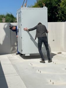Deze batterij wordt door ons gebruikt voor opslag van energie en vervolgens helpt het balanceren van het stroomnet door te laden of ontladen op momenten van overschot of tekort op het stroomnet. Zo wordt een overschot aan duurzame stroom opgeslagen, en wordt op een later moment van grotere vraag kan dit alsnog geleverd worden.