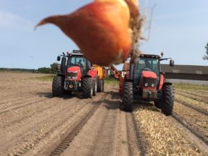 26 juni 2017Het is warm geweest, er is weinig neerslag, de tulpenbollen schreeuwen om uit de grond gehaald te worden. En dus is nu eens niet een voorzichtig begin gemaakt met tulpen rooien, nee het is volle bak rooien. Vele handen maken licht werk, dus alles en iedereen tandje erbij, zodat de oogst gezond binnengehaald kan worden.