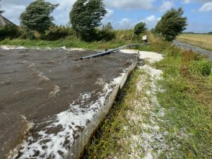 8 juli 2024De eerste zomerstorm van dit jaar is een feit. Langs de hele kust is het stormachtig geweest. Bij de aangekondigde zomerstormen zijn wij altijd extra waakzaam en alert. De gerooide percelen liggen 'bloot', en er moet voorkomen worden dat het gaat stuiven. Het losse zand moet niet aan de waai gaan, want dat is het kapitaal waar wij mee moeten werken. Om dit te voorkomen wordt er compost over de percelen uitgereden, zodat het verzwaard is. Tevens is deze mest natuurlijk een goede natuurlijke verrijking voor de percelen. Er staan ook percelen 'onderwater', deze methode wordt inundatie genoemd. Hierbij is het van belang dat het water wel binnen de schotjes blijft staan, en op deze manier de functie van inundatie blijft behouden. Een spannend moment, maar bij deze eerste storm is het gelukt om schade te beperken tot een minimum.