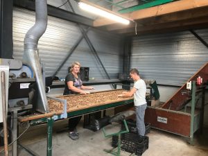 12 juli 2019Volop bedrijvigheid, volop werkzaamheden. Op het land is dat zichtbaar, maar binnen de muren van de schuren wordt er minstens net zo hard gewerkt. De bloembollen die geoogst worden, gaan ook meteen de verwerking in. Ze worden veelal gespoeld, gesorteerd op maat, gepeld, en gelijk in de aflever kisten gedaan. 's Avonds komt de vrachtwagen en de volgende dag staan de bollen bij de kopers. Veelal een groot-inkoper die de bollen verscheept over de hele wereld, of eerst in kleinverpakking doet, en ze dan verzend. De werknemers binnen de schuren zijn scholieren van Nederlandse dan wel Poolse nationaliteit, maar zeker ook volwassenen die ons helpen de oogst te verwerken. We zijn begonnen met de crocussen, nu zijn we bezig in de tulpen verwerking. De grote maten tulpen worden in de afleverkisten gedaan. De kleinere maten tulpen is het plantgoed van volgend jaar en wordt zorgvuldig nagekeken op ziek en zeer en de kluitjes, schelpjes worden eruit gehaald.