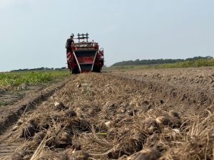 Het oogstseizoen van de lelie bloembollen is in volle gang. Op het land is het de rooimachine die het werk verzet. In de schuren staat een heel team om de…