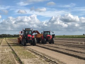 6 september 2019Deze week is een start gemaakt met het rooien van de freesia's. Mooi droog weer, niet teveel wind, kortom ideaal om een start te maken. Eerst is het wat stoffig omdat het lof eraf geslagen wordt, vervolgens komt de rooicombinatie om de knollen daadwerkelijk uit de grond te halen.