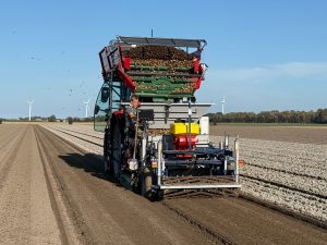 22 september 2025Wij zijn in de kop van Noord-Holland, waar het grootste aaneengesloten bloembollengebied van Nederland ligt, begonnen met het planten van onze voorjaarsbloeiers: de narcissen. Deze bollen gaan als eerste de grond in, omdat ze een lange groeiperiode nodig hebben en goed kunnen wortelen voordat de winter begint. Onze zandgronden zijn hiervoor ideaal; ze zijn goed drainerend en houden voldoende warmte vast om de wortelgroei in gang te zetten. Vooraf maken we de grond los en verrijken we deze waar nodig met organisch materiaal, zoals compost, om de bodemstructuur te verbeteren. De bollen worden machinaal geplant, met innovatieve techniek waarbij de bollen met de groeipunt naar boven en voldoende ruimte ertussen, precies goed in de grond liggen om goed te kunnen groeien.