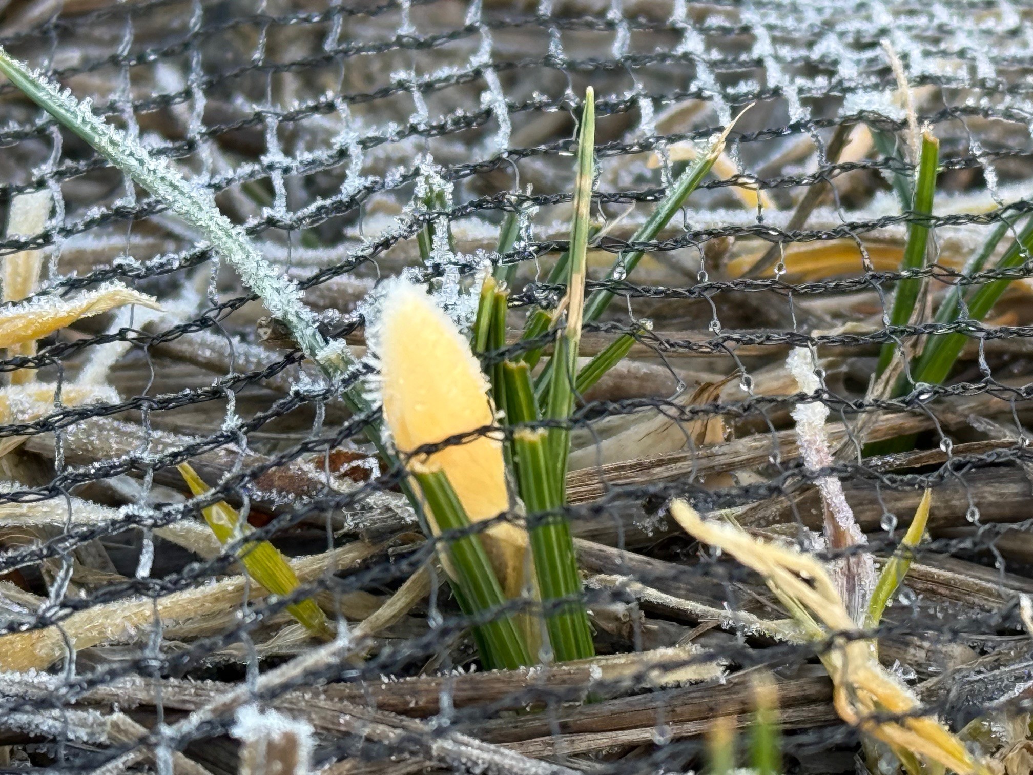23 februari 2026Hoewel koning winter nog steeds zijn best doet met lage temperaturen en witte neerslag, zien we stiekem de eerste tekenen van het komende voorjaar. We zijn blij met de lage temperaturen die een bijdrage leveren aan de natuurlijke weerstand in de bodem. Maar moeten ook toegeven dat we uitkijken naar de kleurenpracht die weer gaat komen. De velden met crocus ziet u op de afbeeldingen afgedekt met doek. Dit doek brengen we over het perceel omdat krokussen een lekkernij zijn voor diverse vogels. En ondanks dat wij de vogels veel lekkers gunnen, is het niet de bedoeling dat ze onze producten opeten.