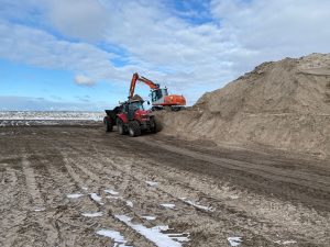 13 februari 2021Voor ons een vanzelfsprekendheid, werken met de natuur en met de weersomstandigheden. Grond bewerken bij vorst gaat natuurlijk niet. Maar, ... er was nog een hoek land die wat zand nodig had om de structuur te verbeteren. En wanneer je dat met vorst kunt doen is dat ideaal. Waarom?? Normaal gesproken krijg je doordat er trekkers in het land rijden, spoorvorming waarbij de bodem aangedrukt doordat er zware tractoren zand komen brengen. Dit is onwenselijk en wanneer de bodem bevroren is, heb je dat niet. En wat gaan wij de komende week dus doen? Inderdaad: zand rijden!! #burgerbloembollen